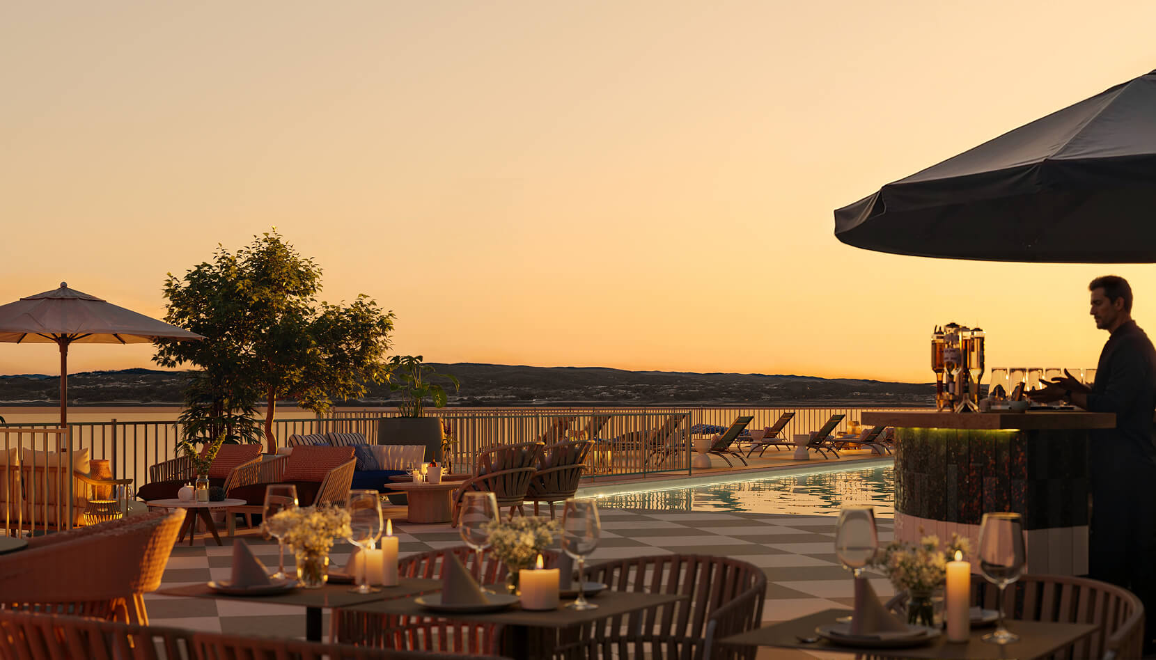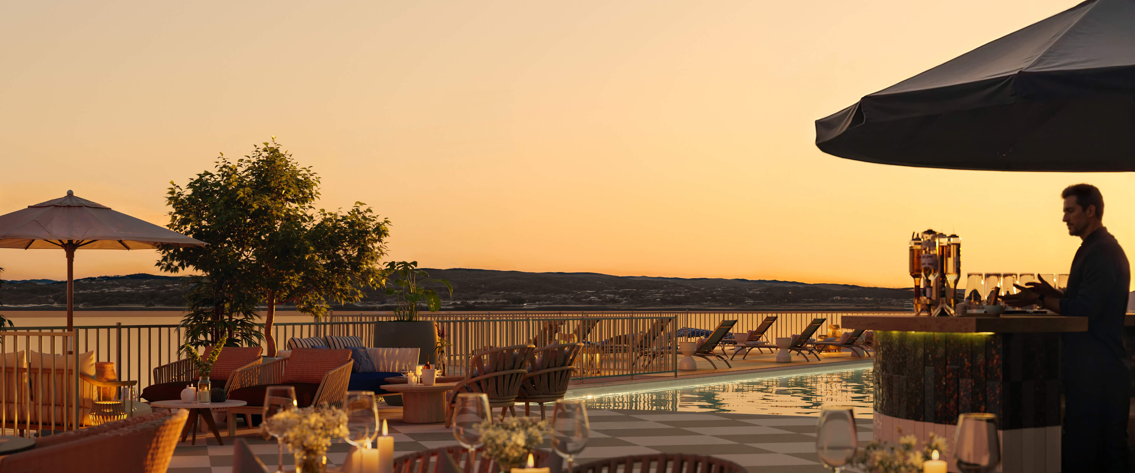 A bar with an iconic terrace and breathtaking views, serving artisan coffee by day and transforming into a vibrant cocktail lounge by night. It’s where expert baristas and creative mixologists craft every sip, and where you will want conversations and sunsets to linger a little longer.
